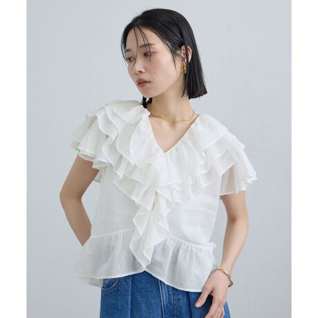 【WEB限定】コットンオーガンジーラッフルフリルブラウス