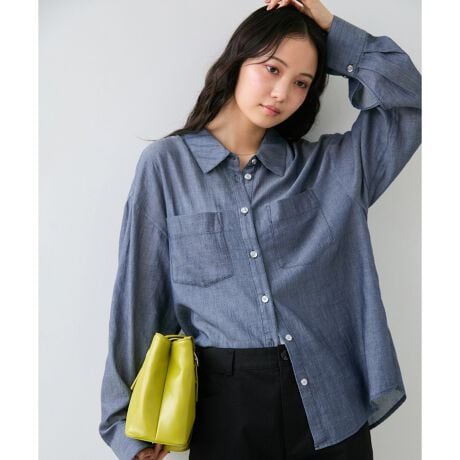 ・硬いデニムのイメージとは違いシャツ感覚で着用できるシアーデニム素材