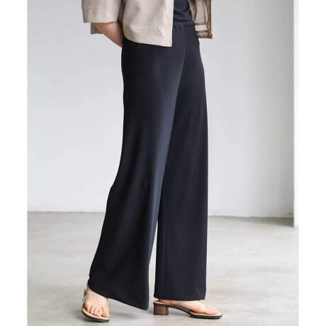 コージーな穿き心地ながらも、きちんと感のある表情でオフィススタイルにも最適なワイドパンツ。Tシャツやスウェットを合わせれば大人カジュアルに、ブラウスやジャケットと合わせればきれいめにと、様々なシーンで活躍します。リラクシーさときれい見えを兼ね備えた、汎用性の高いアイテムです。