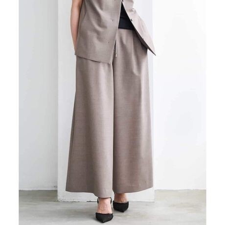 梳毛調トロピカル素材を使用したドローストリング仕様のワイドパンツ。リラックス感のあるデザインながら、きちんとした表情の素材でラフになりすぎず、上品な印象に仕上げています。40サイズは限定店舗展開です。