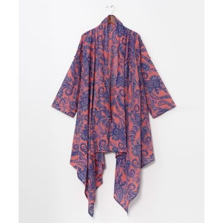 [型番:IAC-6153-2026]ペイズリー柄を大胆にプリントした変形カーディガン。袖タブ付きでアレンジ可能。風通しの良いインド綿素材で、ユニセックスに着こなせる一枚。