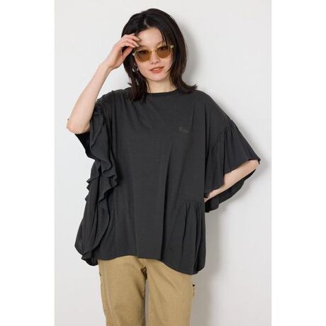 ■ポイントカジュアルなカットソー素材に、表面感のある柔らかなフリル袖を組み合わせたレディライクな切替プルオーバー。ゆったりシルエットで体のラインを拾わず、ラクな着心地ながらきれい見えするのが嬉しいポイントです。フリルが自然に縦のラインを作ってくれて、さりげなく体型カバーを叶えてくれます。■ディテール表面感のあるレーヨン素材のフリル部分は、落ち感があるのでボリュームがですぎないのがポイント。涼し気な雰囲気も演出してくれます。■スタイリングレディライクなデザインなので、カジュアルなフルレングスデニムやカーゴパンツなどとの相性が抜群です。■生地落ち感があり肌触りの良いレーヨン楊柳素材と、21/-TC OE天竺を切り替えて使用しています。左胸の刺繍には光沢のある糸を使用しています。■透け感:ややあり■裏 地:なし■伸縮性:ややあり■光沢感:ややあり※お取り扱い上のご注意家庭洗濯により、シワ感が変化する場合があります。[注意事項]※画像の商品はサンプルです。実際の商品と仕様、加工が若干異なる場合があります。※画像の商品は光の照射や角度、お使いのモニター環境により、実物と色味が異なる場合がございます。※着用、お取り扱いの際は、アテンションタグをご確認ください。