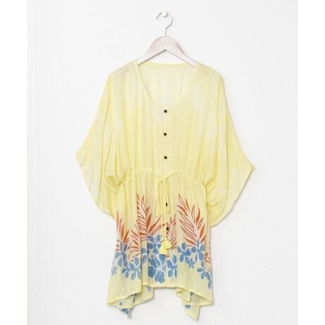 [型番:4IA-6108-2026]レーヨン素材を使用した涼しげなUVカットカーディガン。鮮やかな色合いがハワイの自然を感じさせます。羽織りとしてはもちろん、ボタンを留めてトップスとしても着用できる万能アイテムです。UVカット加工