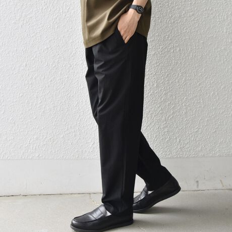 程よいゆとりを持たせ、裾にかけて綺麗にテーパードさせたシルエットのパンツ。