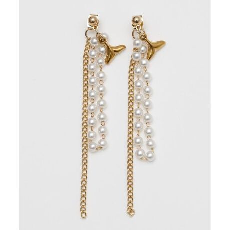 [型番:4KXZ6704-2026]繊細なチェーンとホエールテールモチーフを組み合わせたロングピアス。動くたびに揺れるラインが美しく、耳元に海のきらめきを添えます。上品な輝きで、リゾートスタイルにもきれいめコーデにもなじむデザインです。