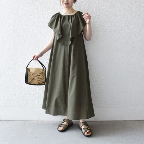 顔まわりを華やかに演出する大きめのフリルは、肩を包み込むようなシルエットで、気になる二の腕をさりげなくカバーしてくれます。
