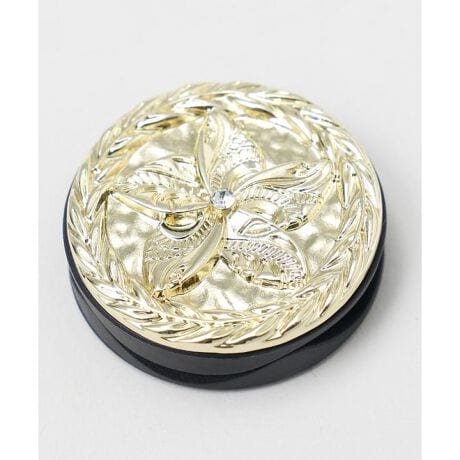 [型番:4CVP6106-2026]プルメリアをあしらったハワイアンジュエリーデザインのスマホグリップ。繊細な模様が光を受けてきらめき、ハワイらしいリゾート感を演出。片手操作をサポートし、スマホスタンドとしても使える便利なアイテムです。