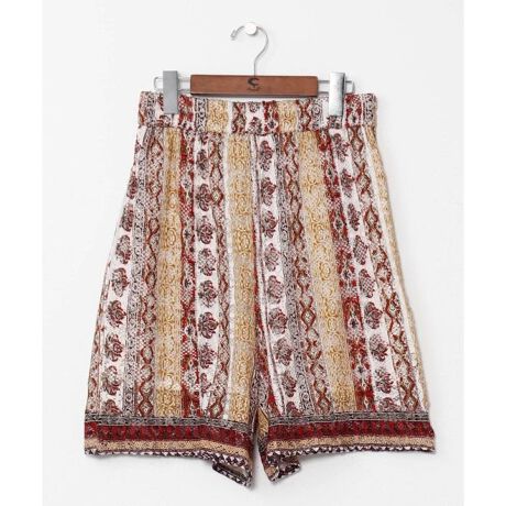 [型番:IAC-6170-2026]ペイズリーと幾何学柄をプリントしたレース素材のハーフパンツ。内紐とゴム仕様で快適、軽やかなデザイン。
