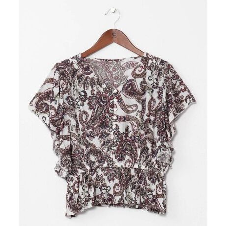 [型番:IAC-6149-2026]ペイズリー柄を大胆にプリントしたトップス。落ち感あるレーヨン素材で、スタイルアップを演出する主役級アイテム。