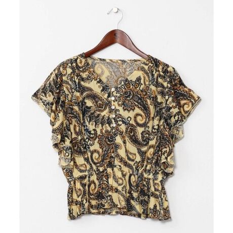 [型番:IAC-6149-2026]ペイズリー柄を大胆にプリントしたトップス。落ち感あるレーヨン素材で、スタイルアップを演出する主役級アイテム。