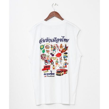 [型番:TLG-6102-2026]【タイ直輸入】タイの文化を詰め込んだプリントが魅力のタンクトップ。フードや祭り、乗り物などをモチーフにしたデザインで、一枚でも存在感抜群。