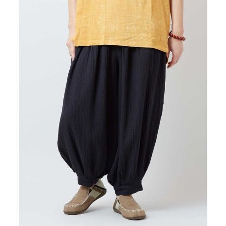 [型番:IDS-6129-2026]砂漠の民の装いをイメージしたダブルガーゼのバルーンパンツ。通気性がよく、裾は締め付けないカフス仕様でリラックススタイルに最適。