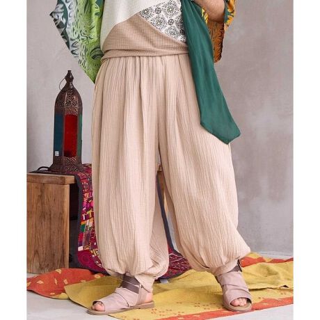[型番:IDS-6129-2026]砂漠の民の装いをイメージしたダブルガーゼのバルーンパンツ。通気性がよく、裾は締め付けないカフス仕様でリラックススタイルに最適。
