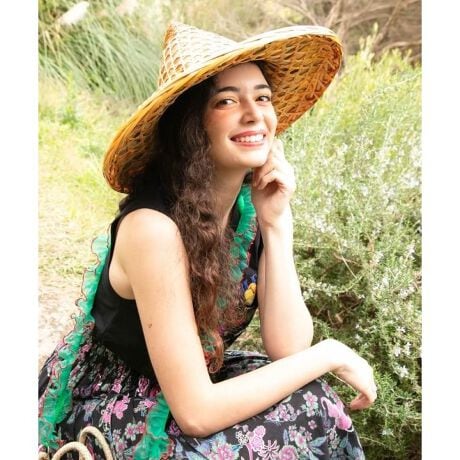 [型番:TXXP6109-2026]【タイ直輸入】天然素材を使ったタイ農民の伝統的なハット。インパクトのあるフォルムで、日差しや小雨よけにもぴったり。フェスやアウトドアシーンにおすすめ。