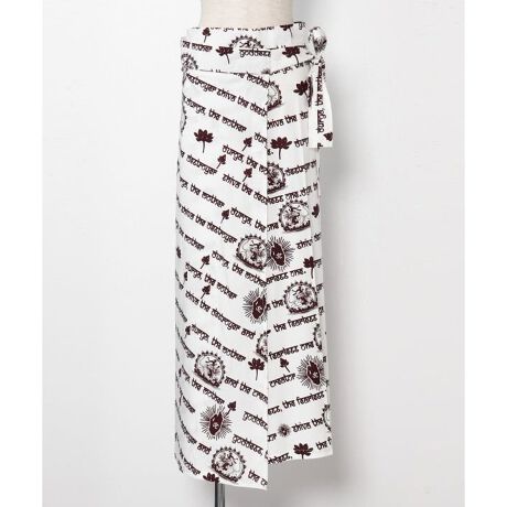 [型番:IDS-6124-2026]インド神話をモチーフにしたプリントスカート。巻きスカート仕様で着こなし自由自在。落ち感のあるレーヨン素材で美しいシルエットに。
