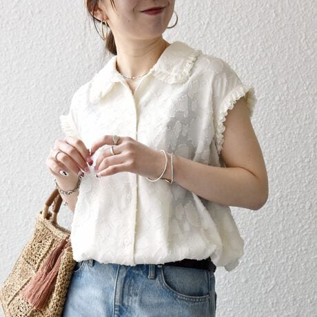 SHIPS any:〈洗濯機可能〉カット ジャカード ドロスト フレンチ スリーブ シャツ ブラウス