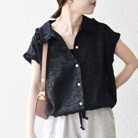 SHIPS any:〈洗濯機可能〉カット ジャカード ドロスト フレンチ スリーブ シャツ ブラウス
