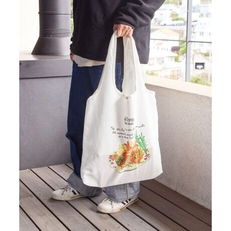 【タイ直輸入】エスニックフードをモチーフにしたデザインバッグ。パッカブル仕様で小さく丸めて持ち運びも簡単。タイの屋台気分を楽しめる遊び心あふれるアイテム。