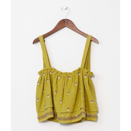 [型番:ILL-6102-2026]インドの民族衣装のレヘンガのトップス「チョリ」を、現代的にアレンジしたショート丈トップス。肩紐で長さ調節が可能で、裾のビーズ刺しゅうが華やかなアクセント。同シリーズのスカートと合わせてセットアップで着るのもおすすめ。