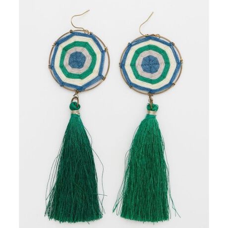 [型番:TLGZ6114-2026]的当てを思わせる丸いモチーフにタッセルを添えたピアス。動くたびに揺れるデザインで、顔周りに明るく華やかな印象をプラス。