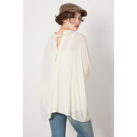■ポイントバックリボンシャツとしても、カフタンシャツとしても2つの表情を楽しめる2WAY仕様。柔らかな表面感のあるレーヨン素材で、風通しもよく着心地も抜群。■ディテール前後2WAYで着用できる嬉しいアイテム。腰回りを隠す長めの丈感も嬉しいポイント。ゆったりとしたサイズ感と、ボリューム袖でありながら落ち感があるので着膨れの心配もありません。■スタイリングデニムはもちろん、総柄やレースのリラックスパンツやスカート同素材のパンツ(420JSR31-0941 レーヨンクレープリラックススカーチョ)とも相性が抜群です。■生地落ち感があり、肌触りの良いレーヨン楊柳素材を使用しています。■透け感:ややあり■裏 地:なし■伸縮性:ややあり■光沢感:ややあり※お取り扱い上のご注意家庭洗濯により、シワ感が変化する可能性があります。[注意事項]※画像の商品はサンプルです。実際の商品と仕様、加工が若干異なる場合があります。※画像の商品は光の照射や角度、お使いのモニター環境により、実物と色味が異なる場合がございます。※着用、お取り扱いの際は、アテンションタグをご確認ください。