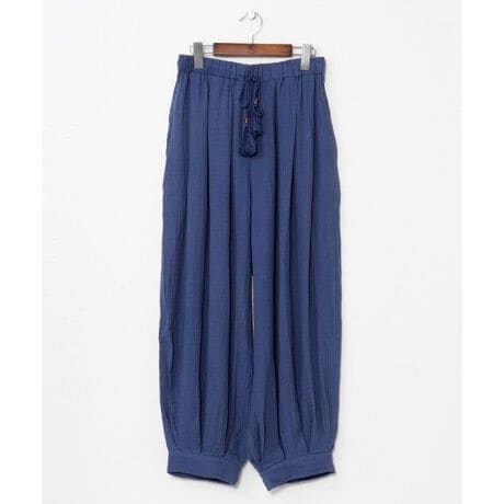[型番:IDS-6135-2026]裾にメタルパーツ付きの紐がアクセントのバルーンパンツ。ダブルガーゼの柔らかい風合いと、ゆったりシルエットが魅力のアイテム。