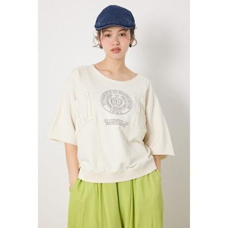 ■ポイント切替デザインや生地の加工感がヴィンテージライクな印象にしてくれる半袖スウェットです。季節の変わり目から気温の高い時期まで、ロングシーズン活躍する一枚です。■ディテール裏毛のループを短くすることで、薄手でやわらかく、軽やかな着心地に仕上げています。■スタイリングコンパクトなサイズ感なので、ゆったりとしたルーズシルエットのデニムと好相性。女性らしさのあるふんわり広がるスカートなどを合わせると、レディライクに仕上がります。■生地※ONE&ONLYタグ付き薄手でやわらかな裏毛素材を使用。パウダー加工により、1点1点色合い、風合いや表情が異なります。この製品の特長となります。■透け感:なし■裏 地:なし■伸縮性:ややあり■光沢感:なし※お取り扱い上のご注意製品染めの特性上、色移りがしやすいです。異色の組み合わせには十分ご注意ください。プリント箇所は着用・洗濯によリ白化、剥離する場合があります。プリント箇所は湿った状態で重ねて放置すると色移りの原因となりますので注意してください。[注意事項]※画像の商品はサンプルです。実際の商品と仕様、加工が若干異なる場合があります。※画像の商品は光の照射や角度、お使いのモニター環境により、実物と色味が異なる場合がございます。※着用、お取り扱いの際は、アテンションタグをご確認ください。