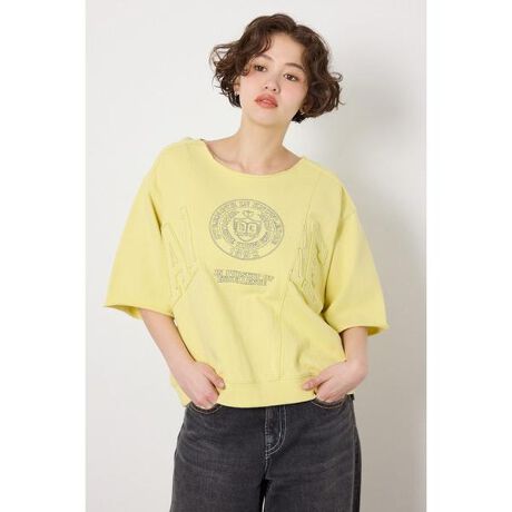 ■ポイント切替デザインや生地の加工感がヴィンテージライクな印象にしてくれる半袖スウェットです。季節の変わり目から気温の高い時期まで、ロングシーズン活躍する一枚です。■ディテール裏毛のループを短くすることで、薄手でやわらかく、軽やかな着心地に仕上げています。■スタイリングコンパクトなサイズ感なので、ゆったりとしたルーズシルエットのデニムと好相性。女性らしさのあるふんわり広がるスカートなどを合わせると、レディライクに仕上がります。■生地※ONE&ONLYタグ付き薄手でやわらかな裏毛素材を使用。パウダー加工により、1点1点色合い、風合いや表情が異なります。この製品の特長となります。■透け感:なし■裏 地:なし■伸縮性:ややあり■光沢感:なし※お取り扱い上のご注意製品染めの特性上、色移りがしやすいです。異色の組み合わせには十分ご注意ください。プリント箇所は着用・洗濯によリ白化、剥離する場合があります。プリント箇所は湿った状態で重ねて放置すると色移りの原因となりますので注意してください。[注意事項]※画像の商品はサンプルです。実際の商品と仕様、加工が若干異なる場合があります。※画像の商品は光の照射や角度、お使いのモニター環境により、実物と色味が異なる場合がございます。※着用、お取り扱いの際は、アテンションタグをご確認ください。