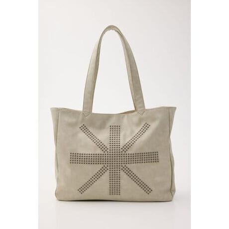 ■POINT:スタッズで表現されたユニオンジャックがポイントのバッグ。ヴィンテージライクな合成皮革を使用していて、ユーズドのような風合いに。■DETAIL:スタッズのインパクトがあるぶん、形はシンプルに。パソコンやA4サイズのノートなどがすっぽりと収まるサイズ感です。■STYLING:スタイリングのアクセントになるデザインなので、カジュアルなアイテムとの合わせがおすすめです。