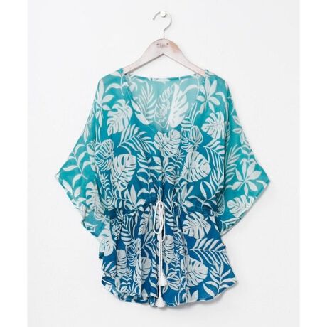 [型番:4IA-6107-2026]軽やかなレーヨン素材で涼しく快適に着られるUVカットトップス。鮮やかなカラーがハワイを思わせ、ウエストを絞ることでシルエットの変化も楽しめる、リゾート感のある一枚です。UVカット加工