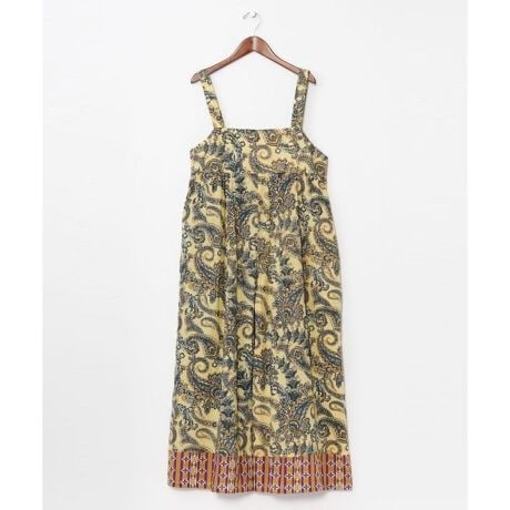 [型番:IAC-6150-2026]肩紐調整可能なサロペット型にペイズリー柄をプリント。風通しの良いインド綿素材で、涼しく着られるリラクシーなデザイン。