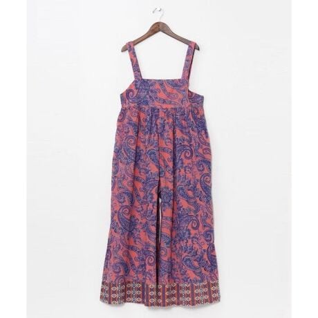 [型番:IAC-6150-2026]肩紐調整可能なサロペット型にペイズリー柄をプリント。風通しの良いインド綿素材で、涼しく着られるリラクシーなデザイン。