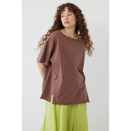 ■ポイントワンショルデザインで、デコルテや肩まわりを美しく見せ、抜け感をプラス。カジュアルな中にほんのり女性らしさを感じさせる絶妙なバランスが魅力です。ピグメント加工が施された独特の風合いは、よりこなれ感を高めてくれます。■ディテール裾口にはオリジナルのネオンカラーネーム付き。スタイリングのさりげないポイントになるデザインです。■スタイリングリラックスパンツやナロースカートなど、あらゆるボトムスとの相性抜群です。■生地※ONE&ONLYタグ付きOE糸を使用、繊維の間に空間があり、適度な空気を含んでいるためシャリ感(ザラ感)があるのが特徴の生地です。ピグメント加工により、1点1点色合い・風合いや表情が異なります。この製品の特長となります。着用やクリーニングを繰り返すにつれ徐々に白化や染料・顔料の脱落が生じ、独特な色合いをお楽しみいただけます。■透け感:なし■裏 地:なし■伸縮性:ややあり■光沢感:なし※お取り扱い上のご注意濃色品は、摩擦により他の衣料、雑貨、家具類に色落ちします。白、淡色との組み合わせは避けて下さい。[注意事項]※画像の商品はサンプルです。実際の商品と仕様、加工が若干異なる場合があります。※画像の商品は光の照射や角度、お使いのモニター環境により、実物と色味が異なる場合がございます。※着用、お取り扱いの際は、アテンションタグをご確認ください。