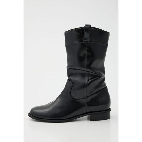■POINT:光沢のある素材がポイントのミドルブーツ。■DETAIL:ローヒールで履きやすく、長時間の外出にもおすすめ。光沢のある生地感に対し、ベーシックなデザインなのでデイリー使いできます。■STYLING:ミニボトムやワンピースなどに合わせるのはもちろん、パンツスタイルでブーツインもできるアイテム。