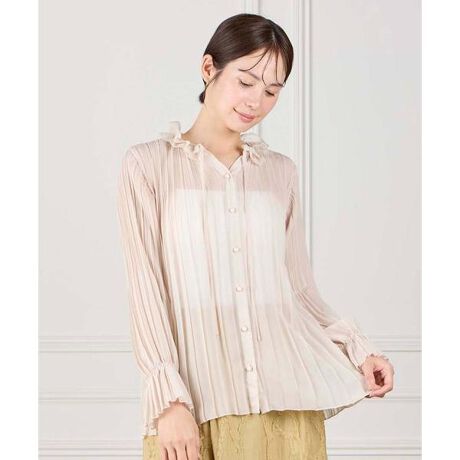 フリルネックプリーツブラウス
