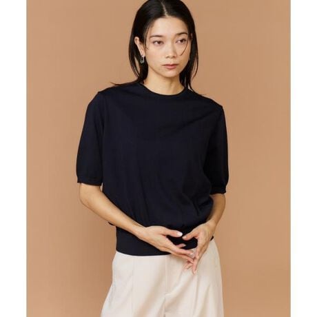 ■デザインややコンパクトなサイジングで上品な印象の5分袖ニット。袖山にタックを入れて程よいボリュームと立体感を持たせた袖と、2枚仕立てにした袖口と裾のリブがアクセントに。ベーシックなクルーネックニットに、さりげないデザインを入れることにより、こなれ感と大人っぽい印象をプラスしました。■素材優れた弾力性を持ちキックバック強く、摩耗性に強い特徴を持つEliteと、シルクのような光沢と滑らかでさらりとした肌触りを持つビスコース。この二つの素材に特別な撚糸を加えることにより、マットな質感と上品で繊細な表面感を表現したエレガントな印象の極細の糸になります。通気性が良く、繊細で柔らかい風合いで毛玉になりにくく、きめ細かい表情と上品な質感を持つ素材です。・水洗い可■サンプル撮影商品画像の商品はサンプルです。実際の商品とはサイズや色味、素材、デザイン等の仕様が若干変更になる場合がございます。■カラーについては、可能な限り実際の商品に近いカラーで撮影をおこなっておりますが、照明の関係により実際の製品とは色味が違って見える場合があります。またパソコン・スマートフォンなどの環境により、若干製品と画像のカラーが異なる場合もございます。現物と画像のカラー差異については返品理由となりませんので、予めご了承ください。■サイズ表記はあくまで目安となります。