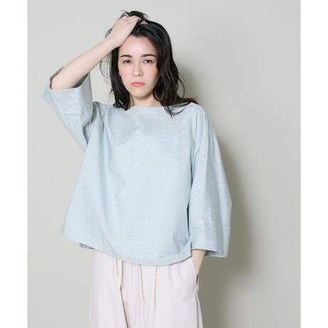 ■デザインボックス型のTブラウス。ストライプのコットン素材を横柄仕様でデザインしました。肩を落としたリラックス感のあるサイジングで、広めに設計した折り返しデザインの袖口は風通しもよく、腕の華奢見え効果も〇。コンパクトな丈感でパンツ、スカートどちらにも合わせやすいデザインです。■素材ストライプ柄がキレイに出るように設計した高密度ポプリン素材。横地取りにすることでボーダー柄として使用しました。綿100%で肌あたりも良く、適度なハリ感と滑らかな表情感が知的で軽やかな印象を与えてくれます。・水洗い可・背中ジップあり■サンプル撮影商品画像の商品はサンプルです。実際の商品とはサイズや色味、素材、デザイン等の仕様が若干変更になる場合がございます。■照明の関係により、実際の製品とは色味が違って見える場合があります。またパソコン・スマートフォンなどの環境により、若干製品と画像のカラーが異なる場合もございます。■サイズ表記はあくまで目安となります。