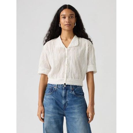 Blue Tab□コレクションは、デニムの世界をリードするLevi’s□ブランドによる、最もプレミアムで、最も洗練された表現です。本物のワークウェアを作り続けてきたLevi’s□ブランドの豊かな歴史を振り返りながら、時代を超えた実用性と現代的な革新性をシームレスに融合させました。それぞれのアイテムはモダンな生地とエフォートレスなスタイリングで再構築され、過去と未来をつないでいます。どのアイテムもLevi’s□ならではのディテールとともに仕立てられたLevi’s□らしさが際立つデザインで、時代を超えたスタイルと、今の時代にふさわしい使い勝手の良さが融合しています。そして、ネップデニム、シャンブレー織のシャツ生地、リッチなインク色の軽量セルビッジデニムといった高品質な生地が、ライン全体に洗練された雰囲気を与えています。リーバイスでは少し珍しい大きな襟と透け感が特徴なガーリーブラウス。