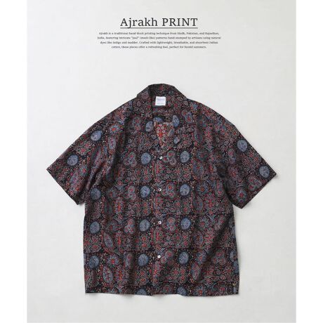 《予約》bunai / ブナイ 別注 アジュラク プリント オープンカラー半袖シャツ