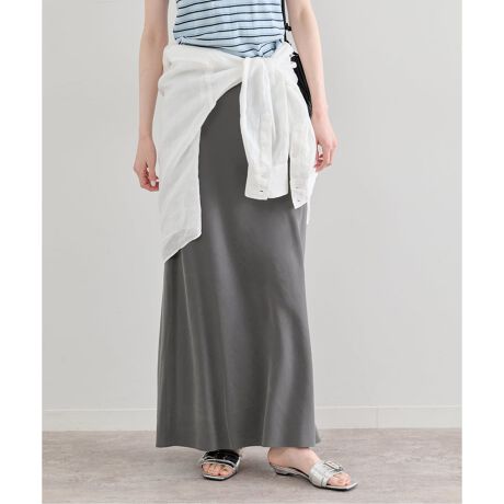 人気のサテンスカートのシルエットをベースに、今季らしいフィブリル素材で仕上げた一枚。