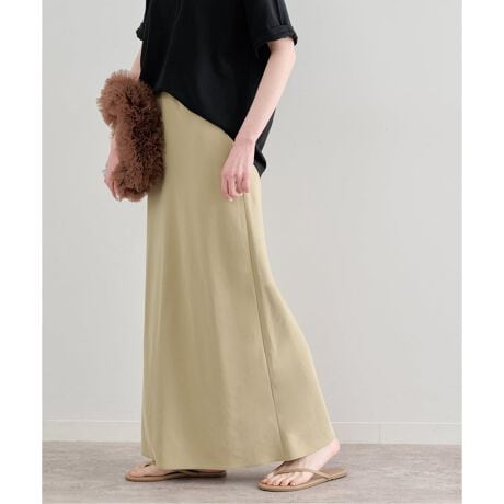 人気のサテンスカートのシルエットをベースに、今季らしいフィブリル素材で仕上げた一枚。