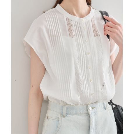 繊細なレースと細やかなピンタックを贅沢にあしらった、着映えブラウス。