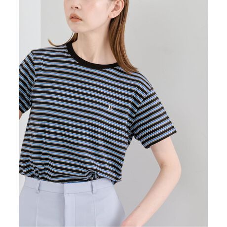 ブルー×ブラックベースのボーダーがスタイリングにさりげないアクセントをプラスし、カジュアルながらもモードなムードを演出。