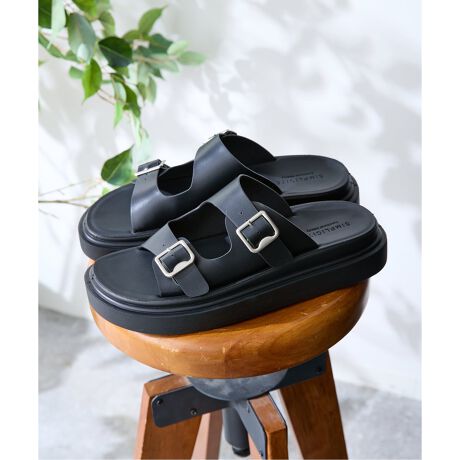 太めの2本ベルトと大きめのバックルをあしらった存在感のあるサンダルです。