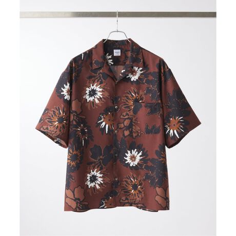 《 夏の光に映える、シックな情熱。独創的なフラワーパターンを纏うオープンカラーシャツ 》