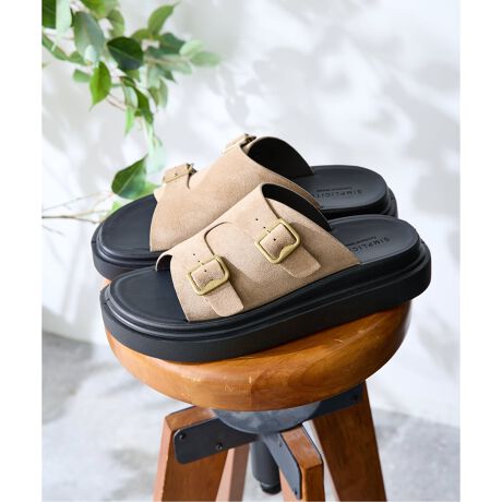 太めのダブルベルトとバックルデザインが特徴のサンダルです。