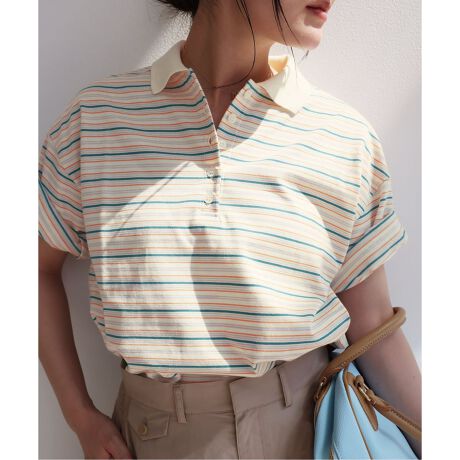 オリジナルでお作りした、マルチボーダー柄の天竺素材を使用したラガーシャツ。