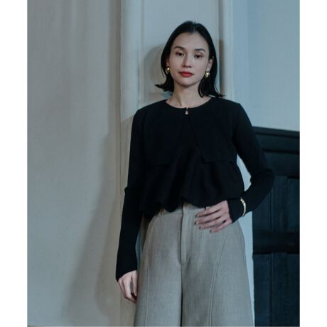 ミニマルな佇まいが際立つ、ボレロタイプのカーディガン。