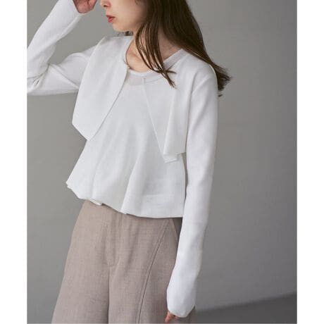 ミニマルな佇まいが際立つ、ボレロタイプのカーディガン。