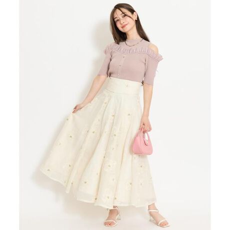 フラワー刺繍シアースカート
